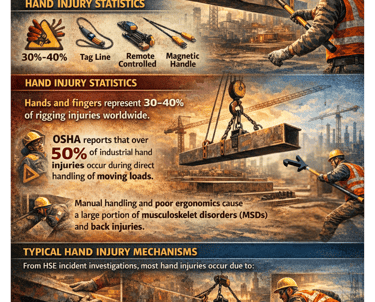 Hands and fingers represent 30–40% of rigging injuries worldwide.